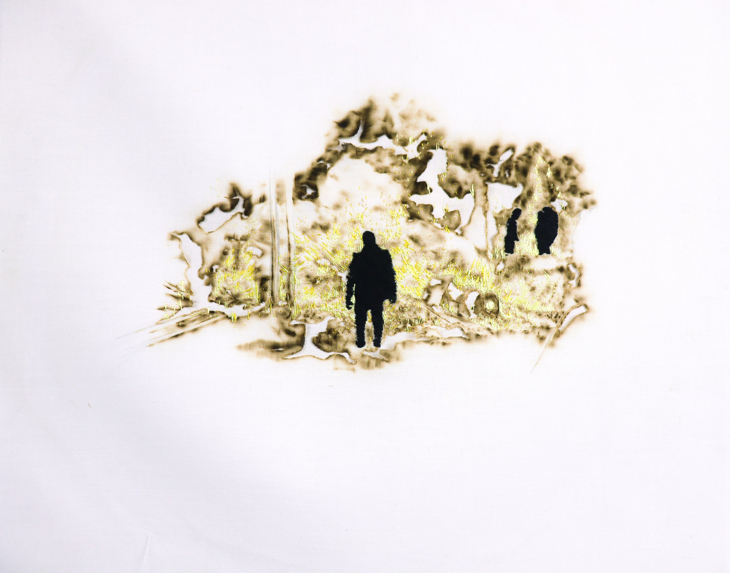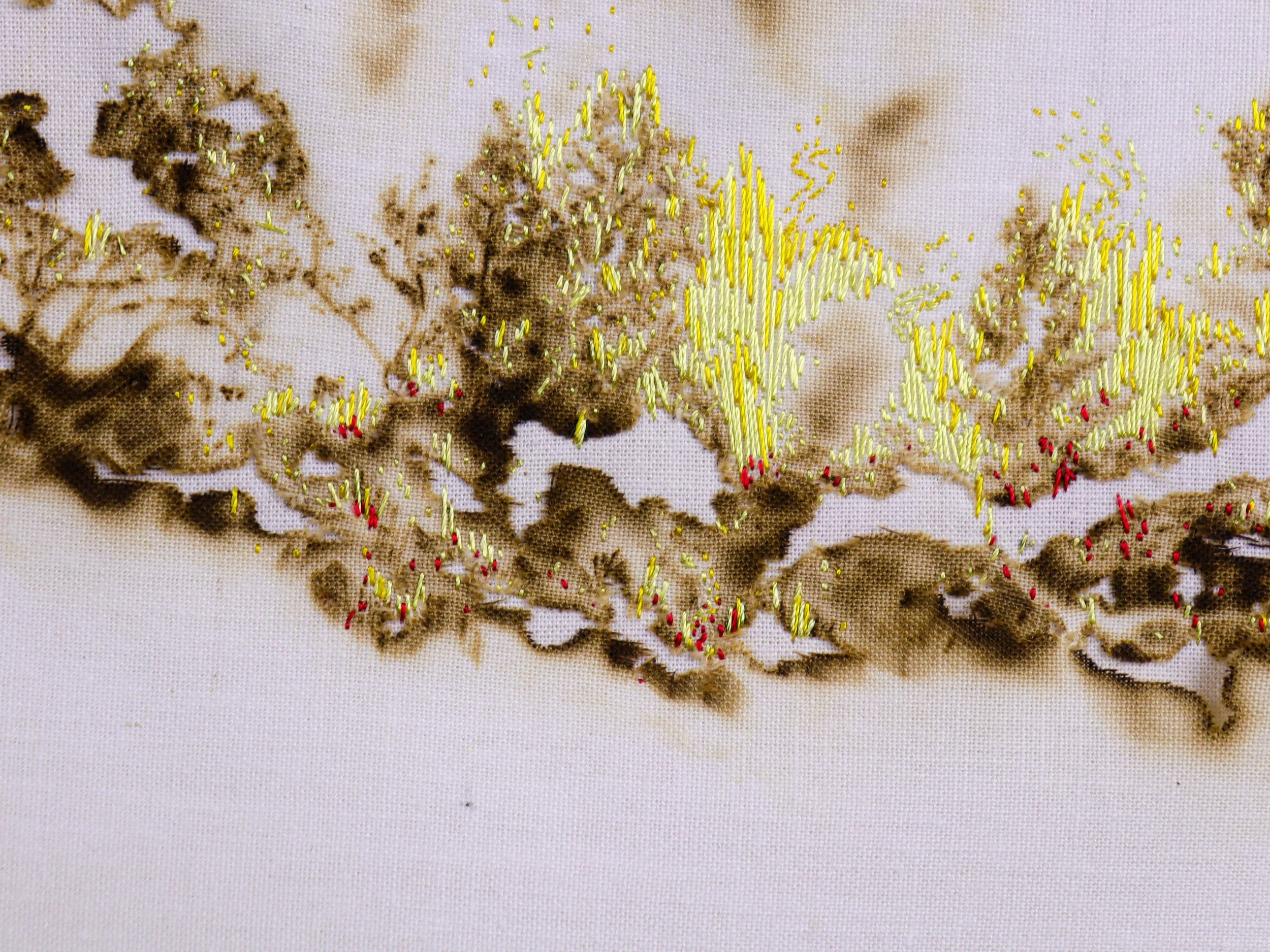 Série de broderies sur textile brûlé, 2020.